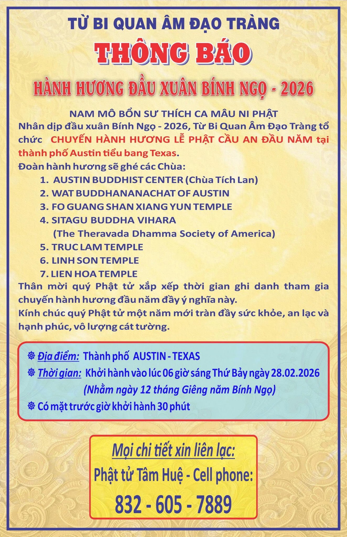 | Thứ Bảy 02/28/2026 | 6:00 AM - Đi Hành Hương (New Year Pilgrimage) |